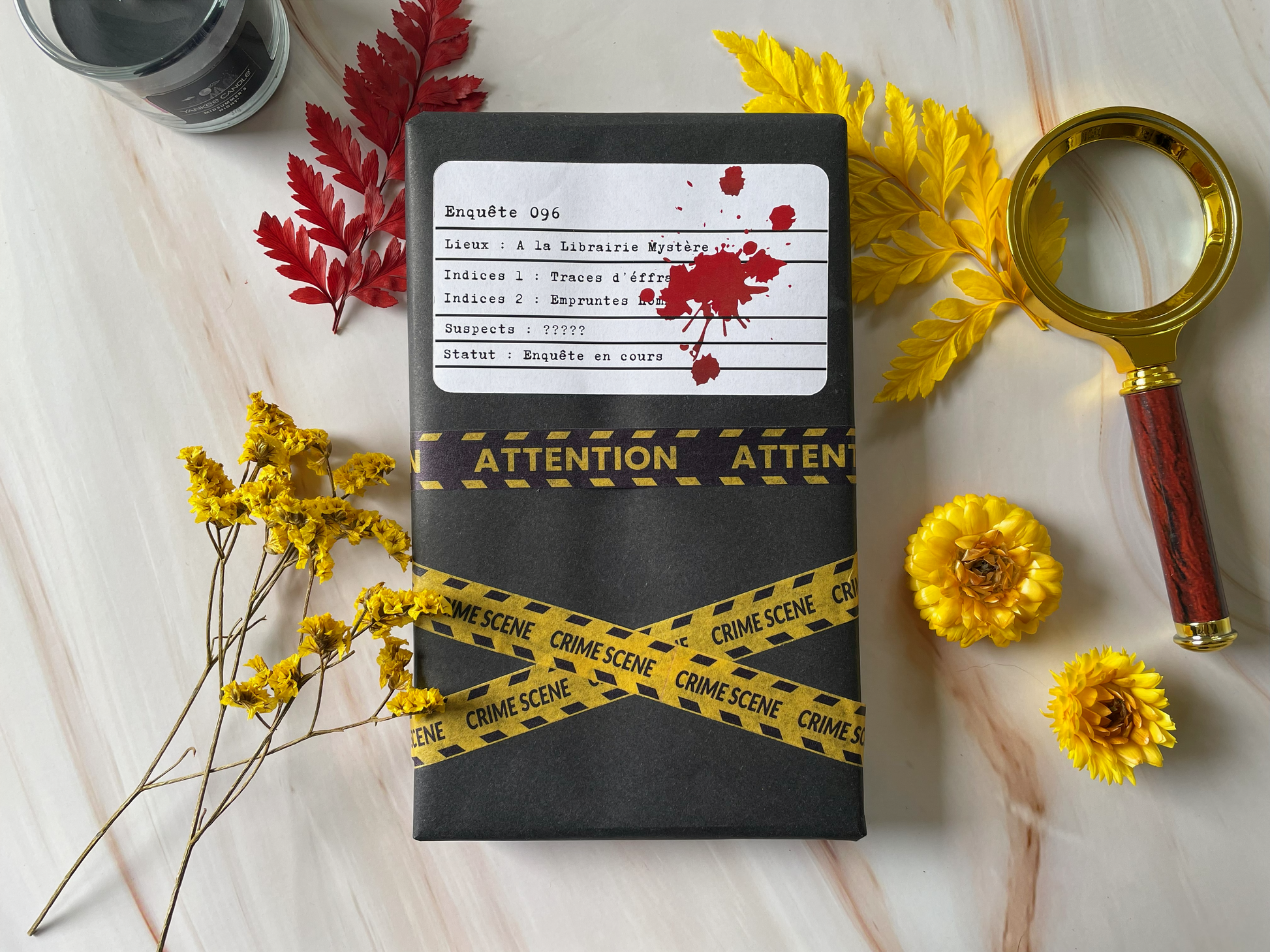 Une box immersive, dans une ambiance de dossier classé confidentiel, avec un livre soigneusement sélectionné pour vous plonger au cœur d’une enquête palpitante !